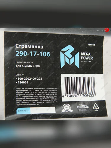 | Наименование | Стремянка МАЗ-500 рессоры передней L=225мм;М24х2мм усиленная MEGAPOWER MEGAPOWER 290-17-106 в Тамбове Тамбовская область |